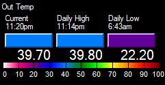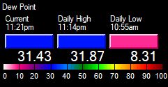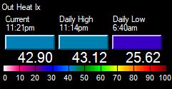 | High Heat Index | 43.2°F at 11:23pm | ||